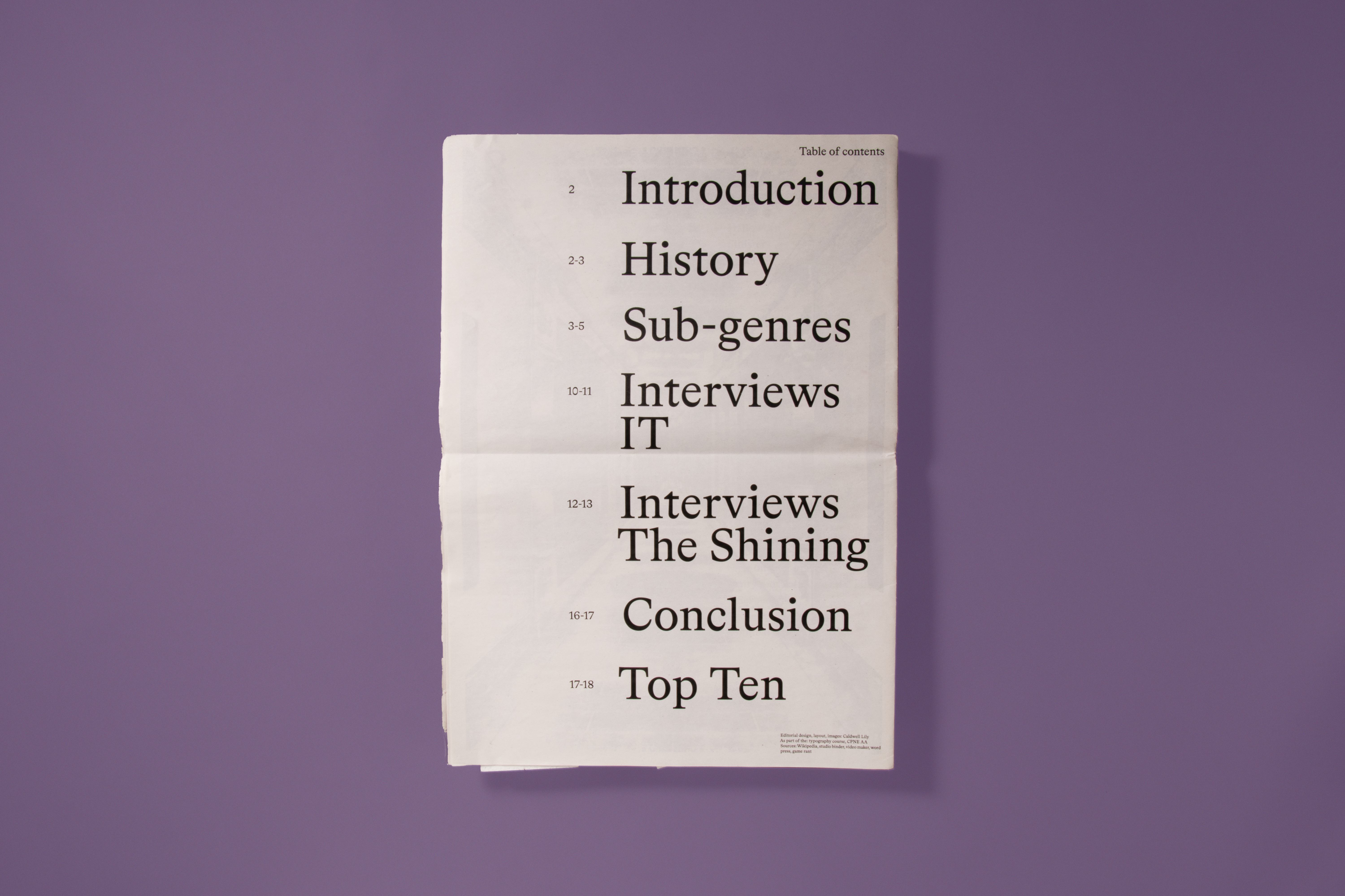 For this work, we needed to create a journal, layout and images, on the theme of a film genre. I chose horror.